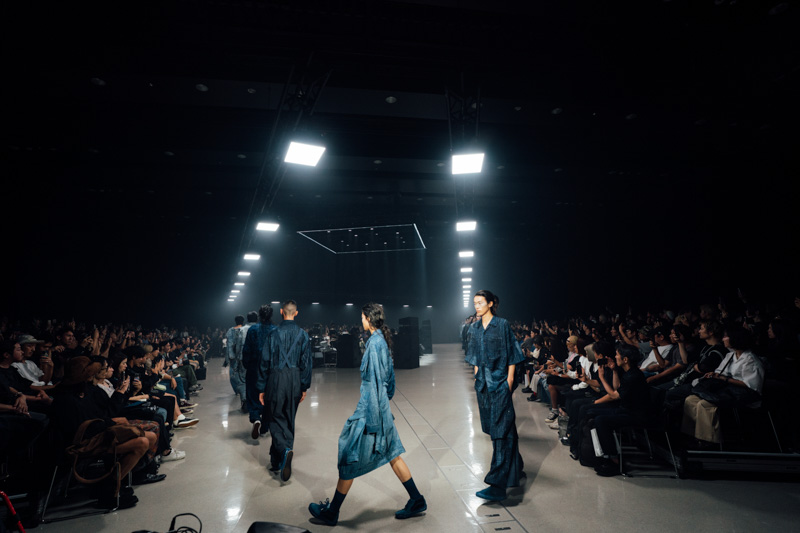 ドラム、ギター、ベースなどバンドが生演奏を披露しインディゴにフォーカスしたコレクションと連動してランウェイが始まった。