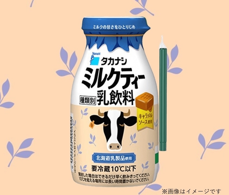 どこか懐かしく親しみやすいデザインの200mlの牛乳ビン型PETボトルに入った飲料シリーズです。シーンに合わせて、ストローでスマートに飲むことも、キャップを取って広口でゴクゴク飲むこともできる2WAY仕様。ミルクのコクと紅茶、キャラメルの風味が絶妙なバランスの乳飲料です。