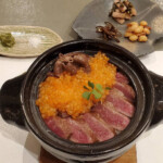 今回のメニューでは、「みずかがみ」の新米を信楽焼の土鍋で一人前ずつ丁寧に炊き上げたごはんに、「近江牛のシャトーブリアンステーキ」(100g)と「ロースの焼きしゃぶ」(50g)を贅沢に使用しています。柔らかさと旨味のバランスに優れた希少部位は、土鍋ごはんとの相性も抜群です。 また、10月に産卵期を迎える琵琶湖の固有種「ビワマス」のいくらをたっぷりとトッピングしています。このいくらは琵琶湖の宝石と称され、鮮やかな色と濃厚な味わいで料理を華やかに引き立てています。