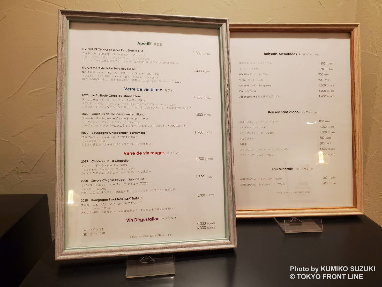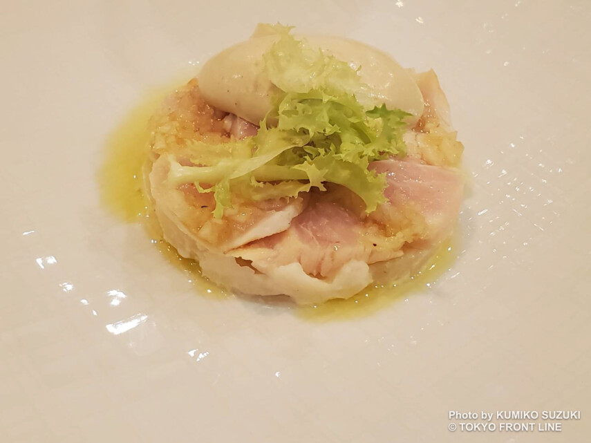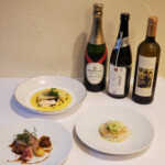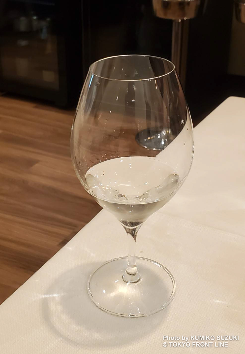 ドリンクは、コース料理とワインのペアリングもご用意しているとのこと。フランス・ロワール地方 老舗スパークリングワインメゾン アケルマンの「クレマン・ド・ロワール ブリュット ビュル・ロワイヤル」、新潟県加茂錦の「荷札酒」短稈渡船 純米大吟醸 しぼりたて、フランス・ボルドー地方の辛口白ワイン 「クルール ド トゥールース ロートレック ブラン」とのペアリングでした。