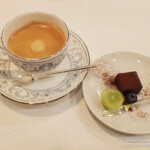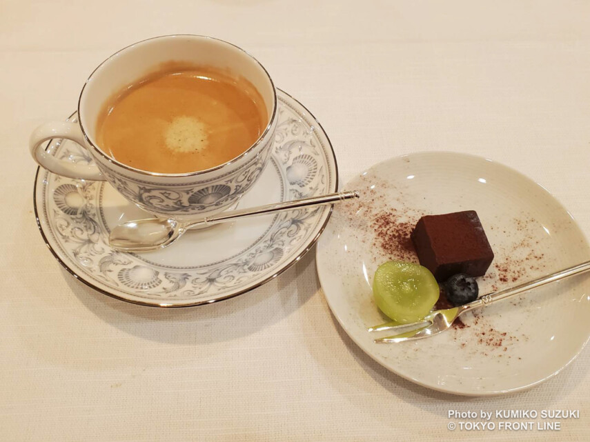 menu bコースの最後には、コーヒーとともにチョコレートとフルーツが提供されました。