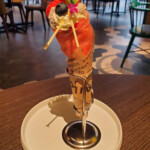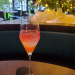 ウェルカムドリンク、「スカーレットトリオ」は、深紅(スカーレット)がグラスの中で輝く、ノンアルコールカクテル。オレンジジャムの柔らかな甘みを基調に、クランベリーとアップル&ブラックベリーが奏でる果実のハーモニーを、トニックの繊細な泡がエレガントに包み込みます。