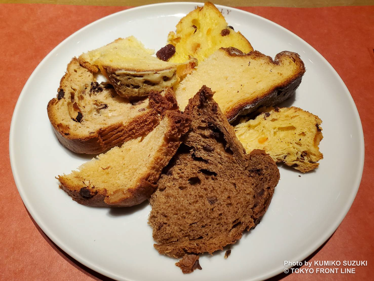 試食会では、レーズンやオレンジの砂糖漬けを使用した「パネットーネ クラッシコ」や、カカオ香るチョコチップとオレンジピールを加えた「パネットーネ クラッシコ チョコレートチップ入り」や、ダークチョコレートのチョコチップとコーヒーの風味をプラスした「パネットーネ カッフェ エスプレッソ」など新商品が披露されました。
