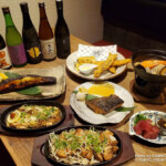 店舗は横浜駅から徒歩8分ほどの距離にあります。店内は古材を使い、暖色系の照明で温かみのある雰囲気を演出。樽型のチェアやカウンター越しに見えるライブキッチンが、活気ある空間を作り出しています。こだわりの銘柄日本酒が並べられ、店内の雰囲気を一層盛り上げています。