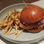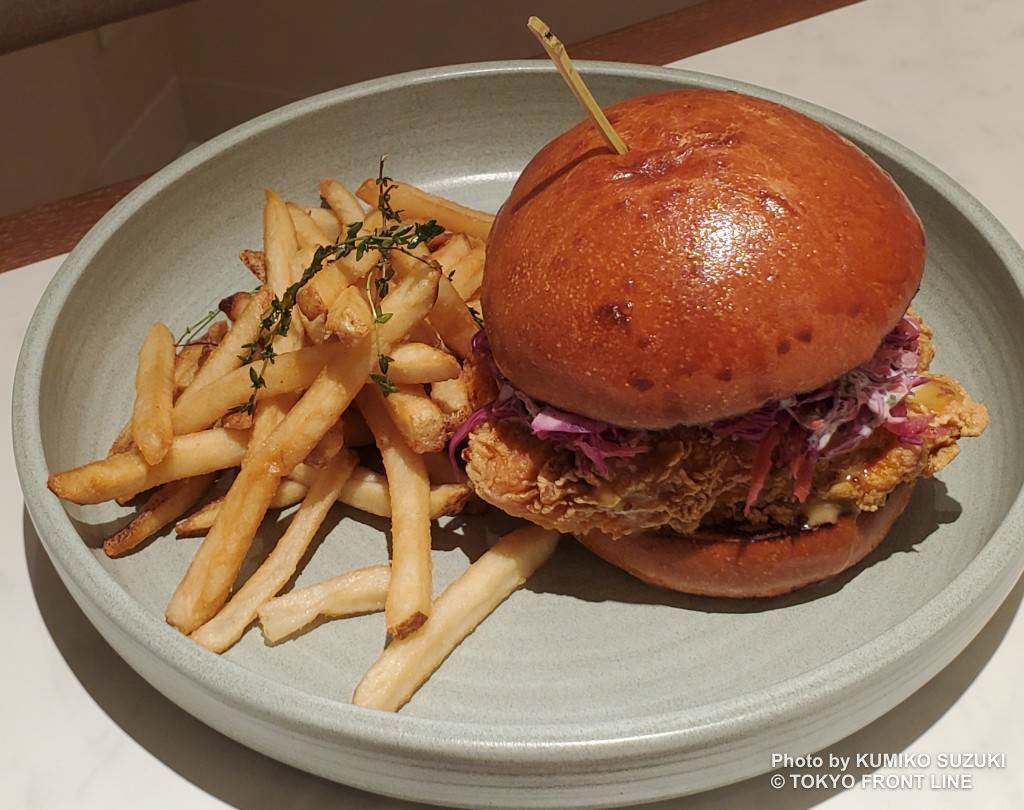 さらに、このクリスピーチキンをバーガーにアレンジした「クリスピーフライドチキンバーガー」(2,200円)は終日オーダー可能。軽くトーストしたふんわりバンズに、ハニーマスタード風味のチキンとコールスローを大胆にサンドした、豪快さとスタイリッシュさを兼ね備えたハイセンスなバーガーです。