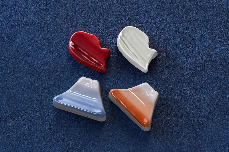 ストーンウェアには、日本の伝統色「アガベ(鉄紺)」「ホワイトラスター(月白)」「ガーネット(深蘇芳)」を取り入れた4シェイプの器と、富士山や鯛をかたどった豆皿セット「ラッキーモチーフミニ・ディッシュ」をラインアップ。