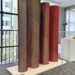 本開発は2030年の実装を目指しており、会場では実際に壁が動く様子が再現されました。LIXILは床・壁・天井といった、空間において重要ではあるものの未開拓な領域において、新たな可能性を探索するインスタレーション「無為に斑 – 空間構成要素の再構築 -」を展示しました。無為(MUI)とは、作為を排した自然体、斑(MURA)とは、多様性やゆらぎ、個性の象徴を意味します。本展示では“斑”という概念を導入し、既存の空間概念を解体・再構築することで、新たな価値を抽出しようと、空間の重要な構成要素である床・天井・壁の3つのインスタレーションを展開。「無為」と「斑」が織りなす新たな概念を実際に体感し、固定観念を見つめ直す思索のひとときを提供しました。