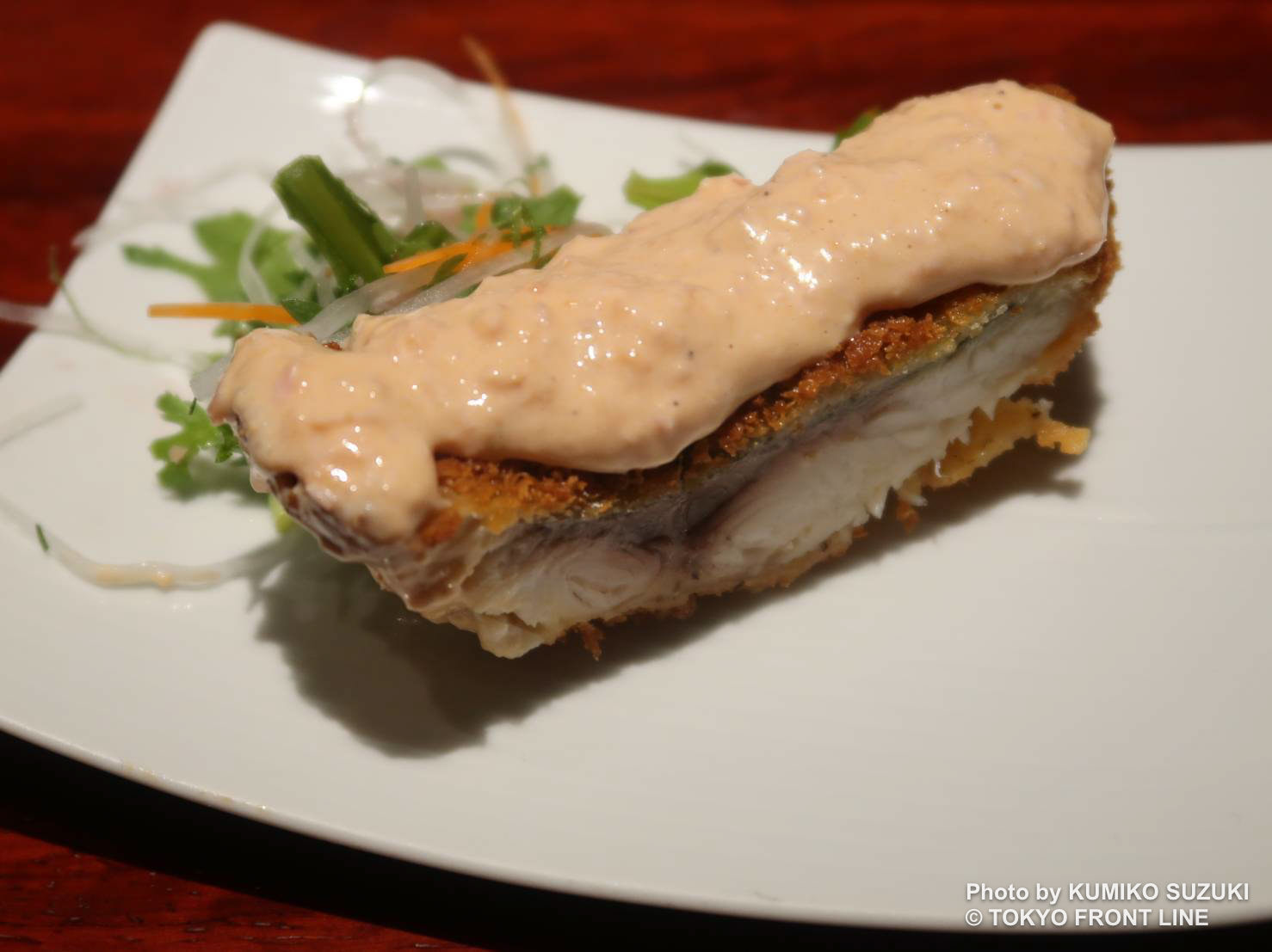 揚げ物では、シマアジフライ(2,200円) が秀逸。衣は軽やかで、身は肉厚。ガリとビーツを使ったタルタルソースを添えています。爽やかな酸味が、魚の甘さを引き立てています。