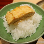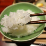 続いて、女性に人気のメニュー「蟹だし巻き」(1,800円)。卵のやさしい甘みの中に蟹の旨みが余韻として残る一品です。食事を支える米は麹町のお米マイスターが厳選する新潟産「つきあかり」を使用。炊き上がりは粒立ちと粘りのバランスが良く、焼き魚との相性も抜群です。