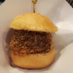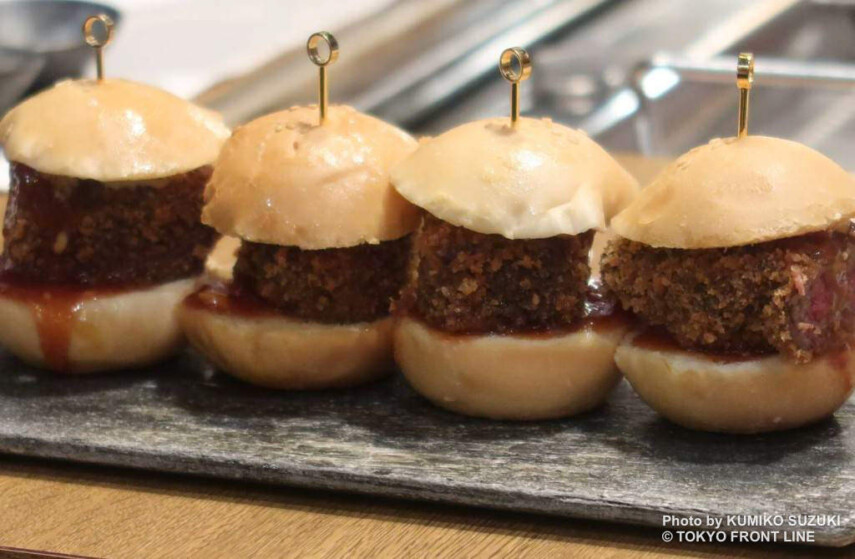 シグニチャーである「ヒレカツスライダー」は、最高級ヒレ肉をトリュフベーカリーのバンズと合わせたひと口サイズのバーガー。サクッとした食感の中からあふれる肉汁と自家製ソース、トリュフマスタードが重なり、旨みと遊び心を詰め込んだ一品。
