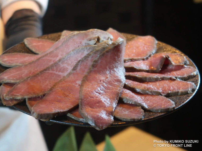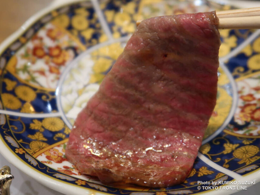 最大の魅力は、第21回 全日本牛枝肉コンクールで名誉賞を受賞した希少ブランド和牛「高森和牛」を使用していること。山口県岩国市周東地域で生産され、年間流通量はわずか約120頭という、国内でも屈指の希少和牛を惜しみなく取り入れています。獺祭の酒粕や米粉を与える独自の飼育方法により、きめ細かな肉質と上品な甘みを備え、「幻の和牛」と称される最高級黒毛和牛です。