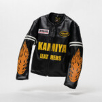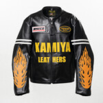 本コラボレーションは KAMIYA SS26 コレクションのルックでも登場し、話題を集めました。創業以来、自社の熟練した職人達によるオールハンドメイドでの一貫生産を行う VANSON Leathers。日本をはじめ、欧米でもその高い品質はプロレーサーからはもちろん、ファッションシーンでも支持され続けています。今回は VANSON Leathers を代表するモデルであるノーカラータイプのレーシングジャケット“BONE”をベースに、KAMIYA らしいアートワークを落とし込みました。