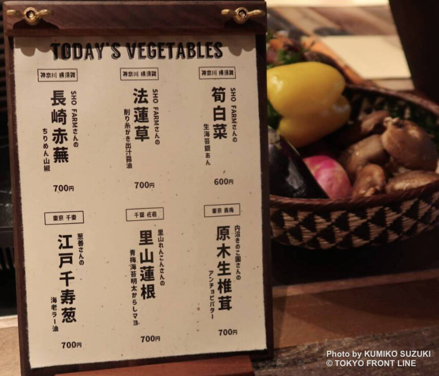 昭和の空気を感じる古びた町工場をイメージした内装は、どこか懐かしく、それでいて居心地の良い非日常を演出しています。「鉄板焼き×和食×オーガニック」をテーマに、旬の野菜を主役に据えた創作料理をご用意しています。