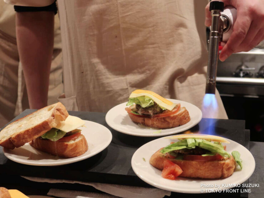 「フランスマッシュバーガー」(1,320円)は、バンズの代わりに香ばしく炙ったフランスパンを使用し、肉肉しいパテとチーズをサンドした食べ応え抜群の一皿。