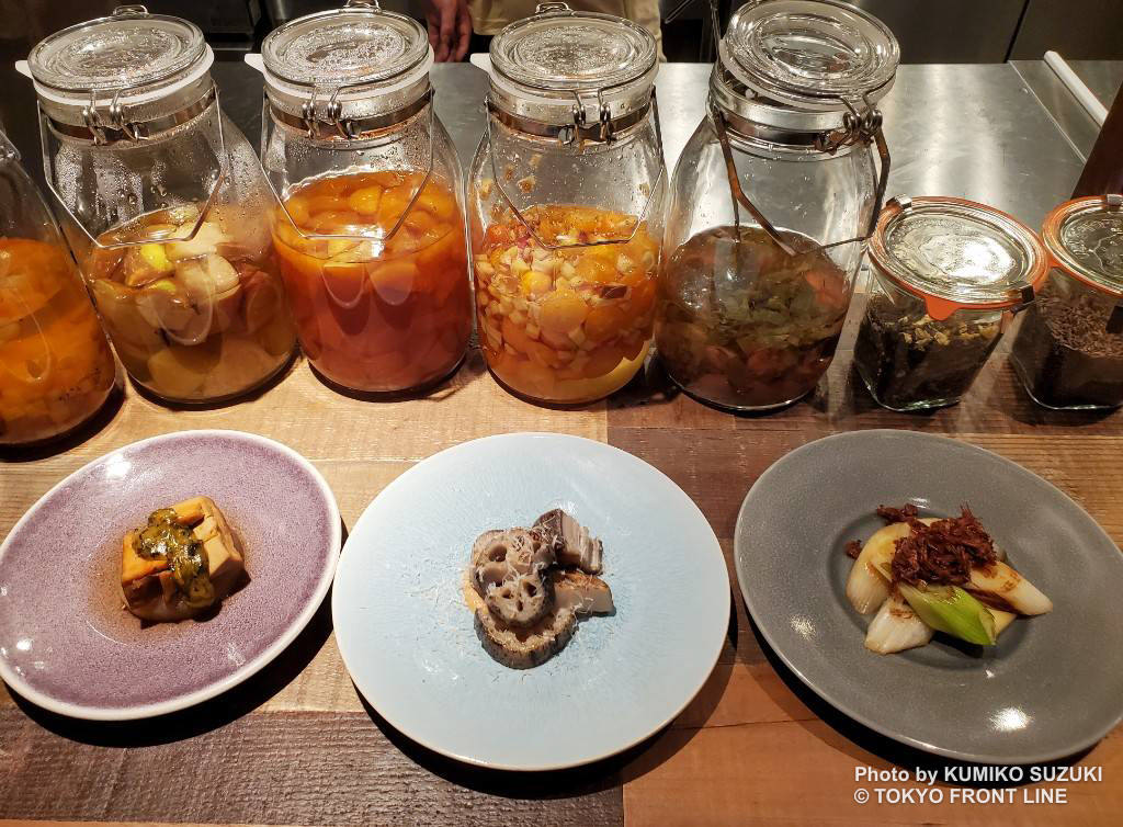 ドリンクは、厳選した国産ハーブやスパイスをブレンドしたお茶でつくる「お茶割り」や、日本酒やワインに果物や野菜を取り入れて仕上げたクラフトサケをご用意。爽やかな清涼感と深みのある余韻が、料理の味をやさしく引き立てています。