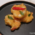 最初に登場した「エビのレモンバターソース」は、ぷりっとした弾力のある大ぶりのエビに、濃厚なバターのコクとレモンの爽やかな酸味が重なり、軽やかな後味が食欲を心地よく刺激する一皿です。
