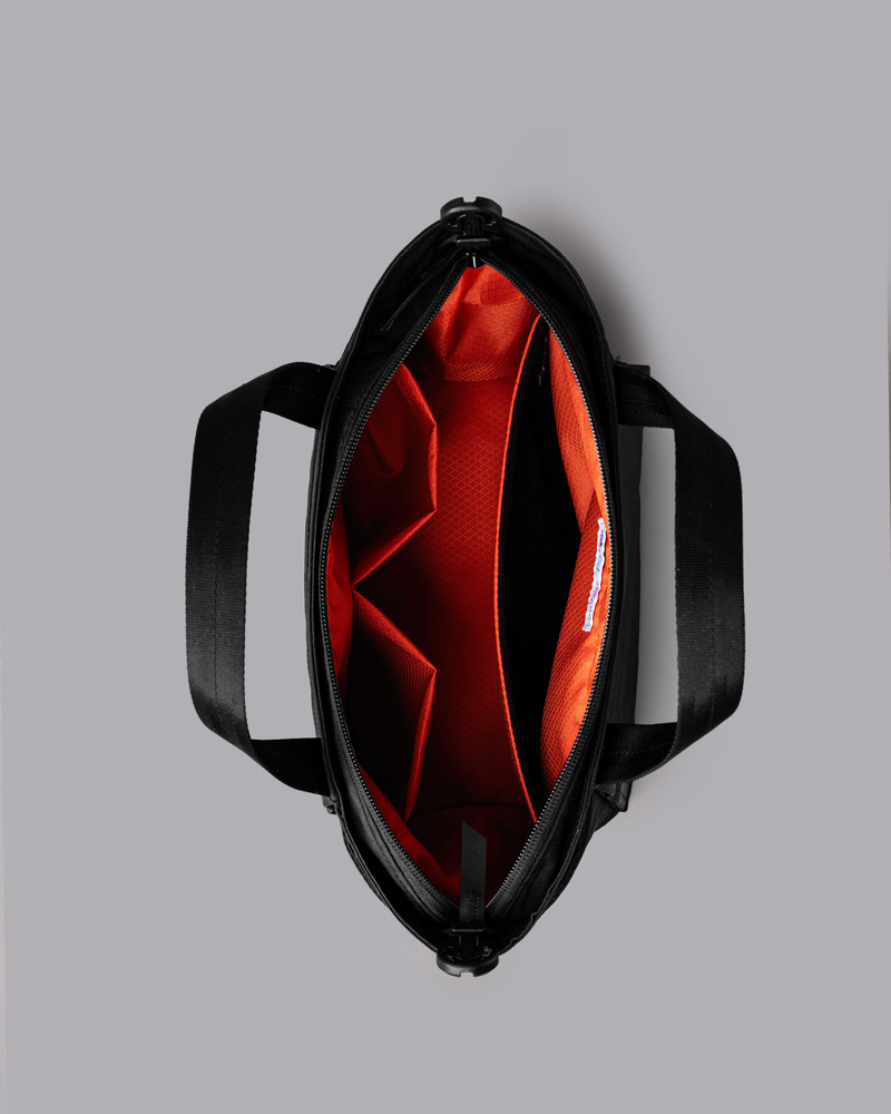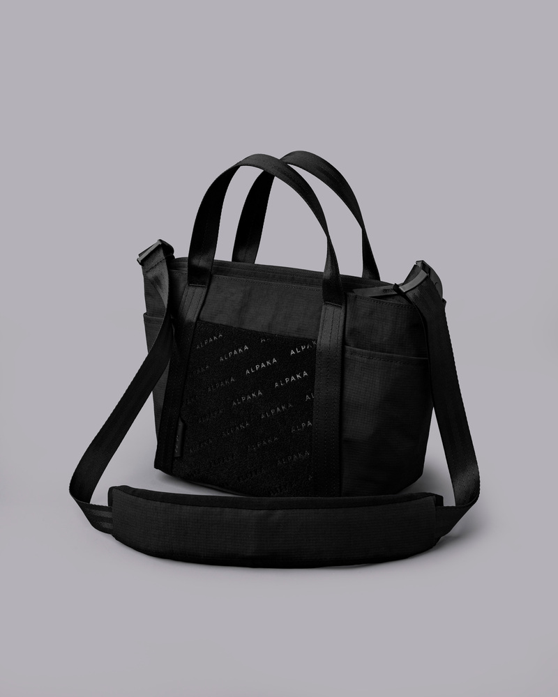 日常使いに最適なミニトートの第2弾モデル。自立するフォルムとミニマルなサイズ感はそのままに、前作から仕様をアップデートしました。前面のパッチが貼り付けられるベルクロ部分にはALPAKAと型押しされており、ブランド初のデザインとなります。全体の素材にはAxoflux®を使用し、軽量性と耐久性を両立。タブレットスリーブや複数のポケットを備え、コンパクトながら高い収納力を実現しています。新色ブラックの追加により、性別やスタイルを問わず取り入れやすい一品に仕上がりました。
