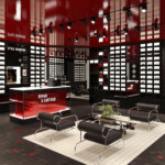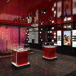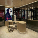 国内最大級の面積となる店内には約1000本のアイウェアが、精密な幾何学模様で彩られたガラスの什器で壁一面にディスプレイされ、アイコンから新作コレクション、キッズやオプティカルコレクションまでフルラインナップが揃います。