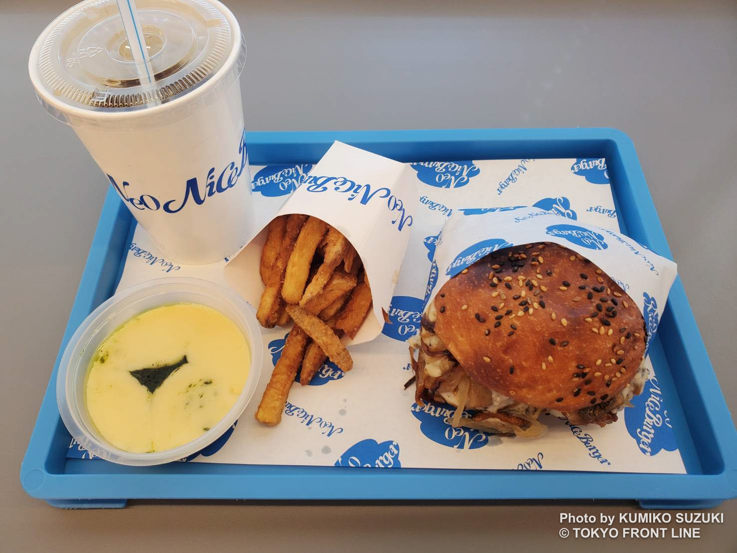 Neo Nice Burgerの試食会では、ブラウンマッシュルームセットと「ジャンキーチーズディップ(ジェノベーゼ)」を体験。きのこの旨みとジューシーなパティが調和したバーガーに加え、コク深いチーズソースとバジルの爽やかさが重なるジェノベーゼディップが印象的でした。