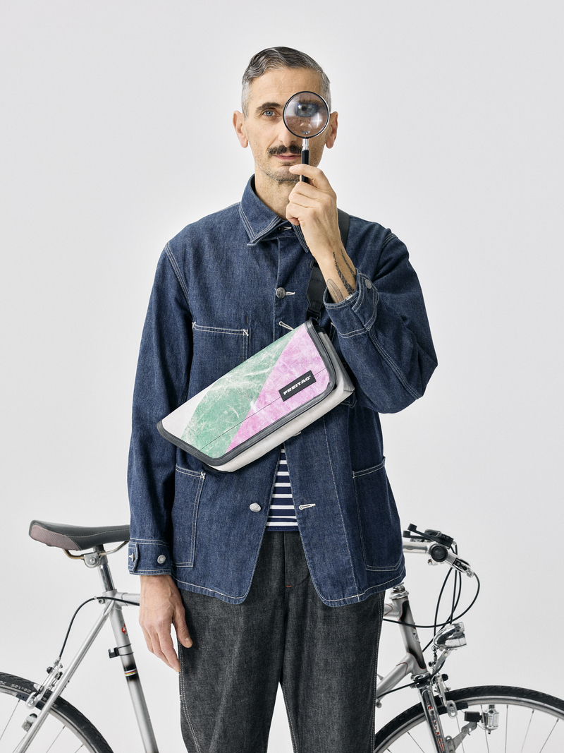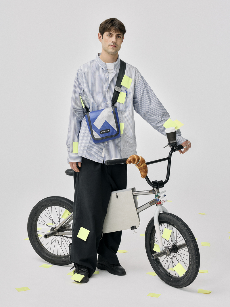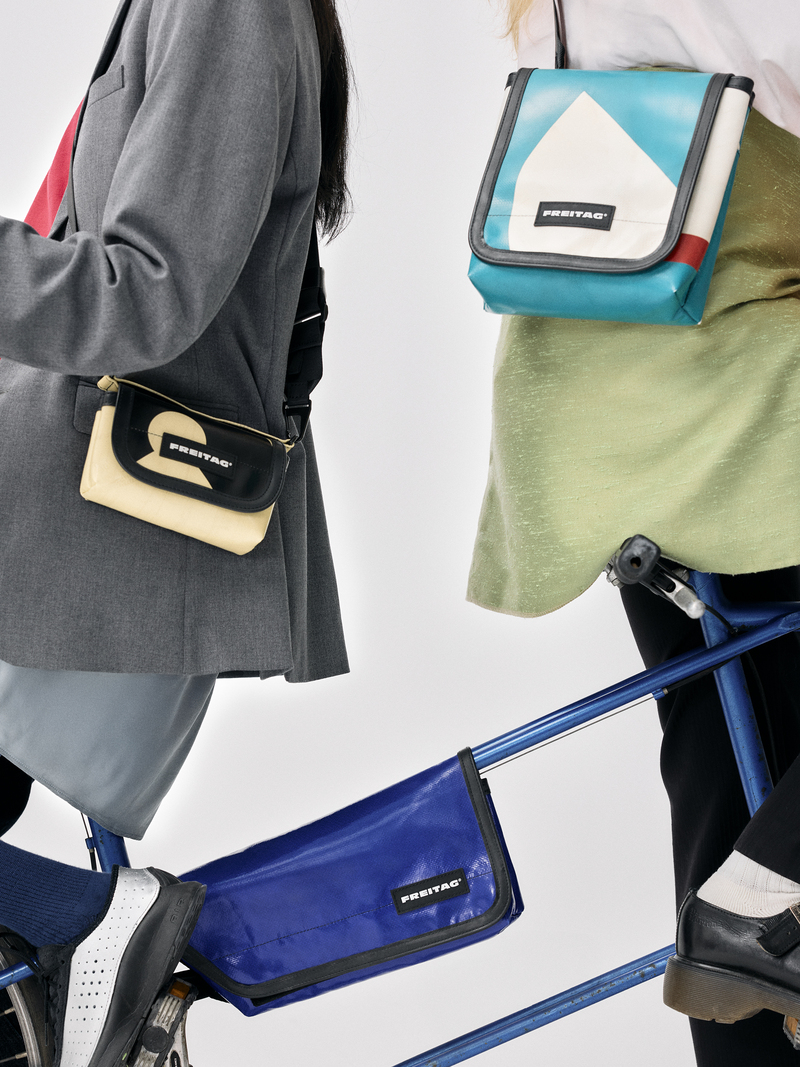 この 3 つの新作の発表によって、FREITAG は、サイクリング業界を揺るがそうとしているわけでも、ハイテクな装備をつくるブランドを追い出そうとしているわけでもありません。ただ、都会でのエンジンに頼らない交通手段を、よりリラックスして楽しめるようにしたいのです。もちろん、自転車よりも徒歩を好む、個性を表現したい都会人も同じです。なぜなら、これら 3 つのバッグは、あっというまに日常に溶け込むクロスボディーバックへと姿を変えるからです。絶妙なサイズ感と新しいデザイン言語を備えた彼らによって、既存のフライターグのラインナップをより完璧なものへと導きます。すべてのバッグは使用済みのトラックタープから作られた一点モノ。そして、FREITAG が33 年間にわたり守り続けてきたバイクカルチャー、個性、アップサイクルという信念そのものなのです。