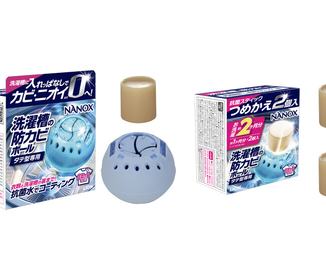 • 洗濯槽のカビ・ニオイ対策は「落とす」から「防ぐ」へ。洗濯槽に入れっぱなしでカビ・ニオイを防いで、洗濯槽と衣類のキレイが続く『NANOX 洗濯槽の防カビボール タテ型専用』新発売